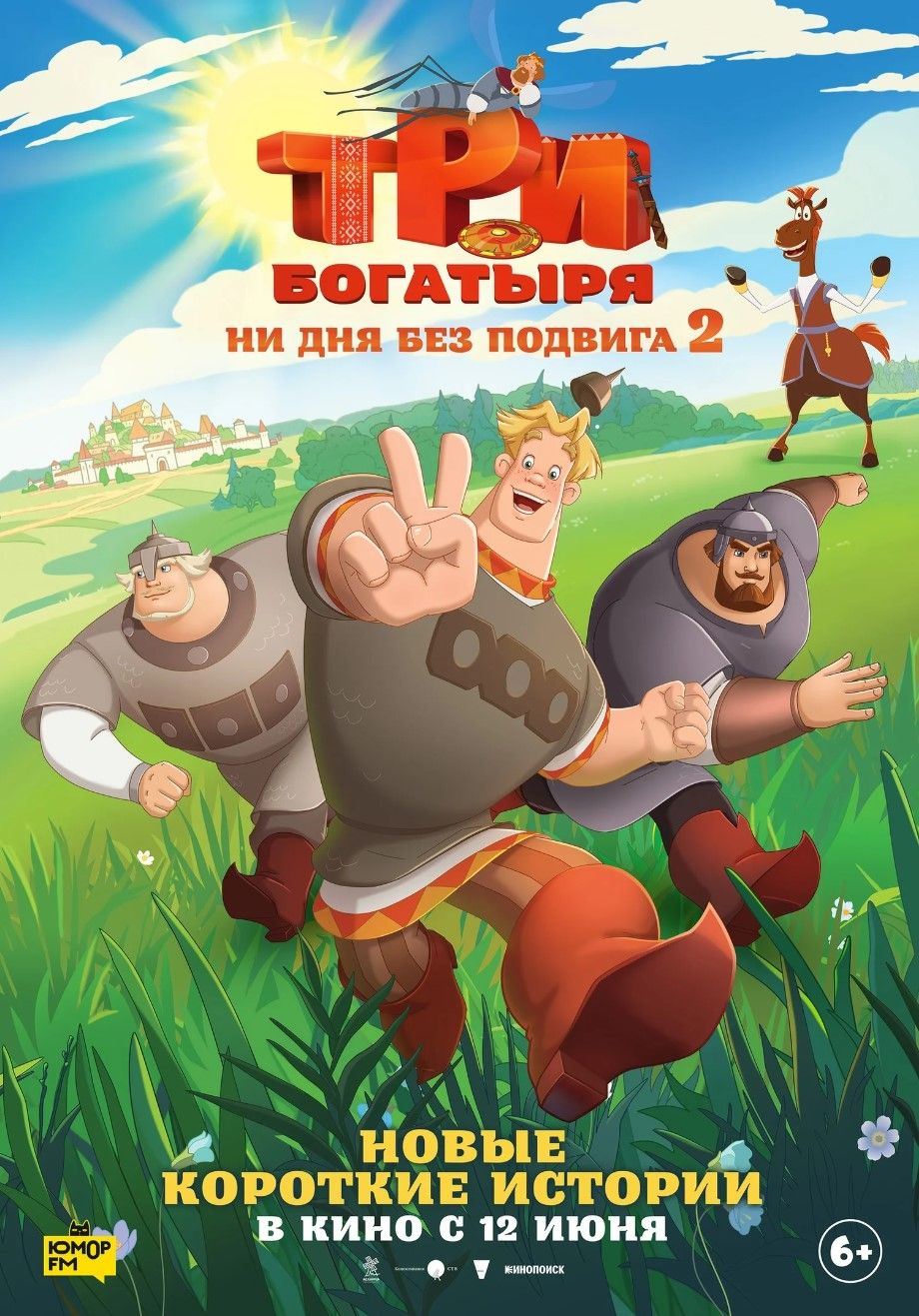 Создатели анимационной антологии «Три богатыря. Ни дня без подвига 2» опубликовали первый постер картины. На нём показали всех трёх богатырей, а на заднем плане красуется конь Юлий.