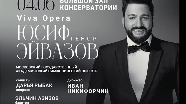 4 июня в Большом зале Московской консерватории состоится праздничный гала-концерт «Viva opera», посвященный шедеврам русской и зарубежной музыки. В исполнении известного тенора Юсифа Эйвазова прозвучат знаменитые арии из опер Петра Ильича Чайковского, Джузеппе Верди, Джакомо Пуччини, Руджеро Леонкавалло и других композиторов. Юсиф Эйвазов регулярно выступает с лучшими артистами современности, вот и на этот раз вместе с мировой звездой оперы выступят сопрано Дарьи Рыбак , победительница Швейцарского национального музыкального конкурса SJMW в 2011 и 2013 годах, лауреат премии Баккарини и Гюг-Куэно, а также народный артист Азербайджана, солист Большого театра России Эльчин Азизов . Концерт пройдет в сопровождении Московского государственного академического симфонического оркестра, за дирижерский пульт встанет один из самых востребованных российских дирижеров, лауреат Первого международного конкурса пианистов, композиторов и дирижеров им. С.В. Рахманинова Иван Никифорчин. Вечер откроет великая музыка Чайковского, наполненная глубоким лирическим чувством, душевной искренностью и поразительным мелодическим богатством. Зрители смогут услышать знаковые арии из опер «Пиковая дама», «Евгений Онегин» и «Иоланта», ставшие хрестоматийными еще при жизни композитора. Второе отделение будет посвящено зарубежной классике, в полной мере проявляющей драматический талант и вокальное мастерство прославленного тенора. Яркие и эмоциональные партии из опер Верди, Пуччини, Леонкавалло, Джордано, Масканьи, а также других гениальных композиторов, создадут непередаваемую атмосферу праздничного вечера, посвященного триумфу оперы и наполненного бесконечной любовью к музыке. Юсиф Эйвазов — народный артист Азербайджана (2018), директор Азербайджанского государственного академического театра оперы и балета (2023). Ученик Пласидо Доминго и Лучано Паваротти, Юсиф Эйвазов неоднократно становился лауреатом международных вокальных конкурсов. Сегодня певец выступает в ведущих оперных театрах мира, среди которых Ла Скала, Венская государственная опера, Лондонский королевский оперный театр и Национальная опера Парижа. Московский государственный академический симфонический оркестр (МГАСО) был основан в 1943 году Правительством СССР и является одним из лучших симфонических оркестров России. Благодаря разнообразию программ и неизменно высокому уровню их исполнения, коллектив заслужил уважение и любовь слушателей в России и за ее пределами. МГАСО ежегодно дает концерты на ведущих концертных площадках столицы и активно гастролирует по регионам, активно выступая как с приглашенными российскими дирижерами и солистами, так и с зарубежными маэстро. Оркестр принимает участие в конкурсах молодых исполнителей и открывает путь к профессиональному развитию выпускникам высших учебных заведений России. 14 августа 2024 г. новым художественным руководителем МГАСО назначен Иван Никифорчин — лауреат Первого международного конкурса пианистов, композиторов и дирижеров им. С.В. Рахманинова. Он неоднократно выступал с МГАСО и на протяжении последних лет сотрудничал со многими ведущими оркестровыми коллективами страны. Организатор концерта — концертное агентство Moscow Nights , более 10 лет работающее с лучшими исполнителями своего времени, включая Хиблу Герзмава, Юри