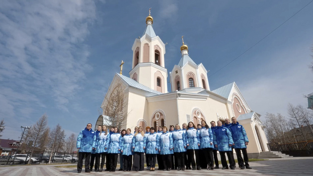 Сцену организовали на территории Храма святых апостолов Петра и Павла. Это первый каменный православный храм в зоне вечной мерзлоты. Для салехардцев он стал местом силы, символом света, добрых помыслов и веры.