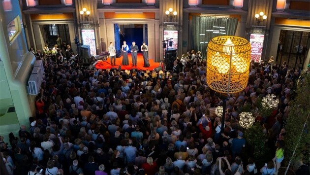 Вели концерт эмоциональные Андрей Ильин, Анна Антонова, Полина Крузьминская, Юрий Цокуров. Режиссёром стала Лейла Абу-аль-Кишек. Напомним, что "прощальную" традицию заложил ещё в 2009 году Виктор Добронравов – это была его инициатива, подхваченная коллективом театра. С тех пор ежегодно по окончании сезона вахтанговцы идут в арбатский народ и показывают, на что способны. А способны они на многое. Прекрасные голоса, артистизм, пластика и неподражаемое "вахтанговское" остроумие. В концерте приняли участие и студенты Щукинского училища, и народные артисты. Так, Марина Есипенко спела вместе со зрителями: "Как здорово, что все мы здесь сегодня собрались...". Андрей Ильин вышел в роли обманутого мужа в отрывке из "Тамбовской казначейши" Лермонтова. Украсило концерт и выступление певицы Дианы Гурцкая. Наконец, несравненная Ирина Купченко прочитала со сцены военные стихи Ольги Берггольц, чем внесла суровую актуальную ноту в фейверек Вахтанговского праздника. Впереди у театра гастроли во Владикавказе и осенью открытие нового 105-го сезона.