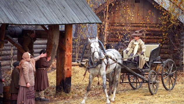Если обратится от советского к российскому периоду, то, конечно, первым делом стоит вспомнить "Сибирский цирюльник" (18+) Никиты Михалкова. Съемки в основном проходили на территории архитектурно-этнографического музея-заповедника "Щелоковский хутор". Правда памятников деревянного зодчества XVIII-XIX веков для декораций оказалось недостаточно и здесь дополнительно возвели два амбара, бревенчатые заборы с настилом во дворе и отдельно стоящую стену с окошком. постройки и наклеивали на брёвна мох. Постройки специально старили и наклеивали на них мох.