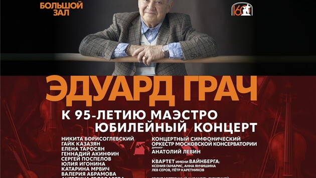 Никита Борисоглебский, Гайк Казазян, Елена Таросян, Геннадий Акинфин, Сергей Поспелов, Юлия Игонина, Валерия Абрамова, а также молодое поколение ярких скрипачей - Ангелина Гвоздарева, Агафья Григорьева, Джейла Сеидова, представительница Сербии Катарина Мрвич. Эдуард Грач, много лет руководивший камерным оркестром "Московия", считал своими учениками не только скрипачей, но и всех струнников, кто входил в состав коллектива. Поэтому традиционно в праздничной программе - специальные гости. Это - Василий Степанов (виолончель), Квартет имени Вайнберга, Концертный симфонический оркестр Московской консерватории, а также давние творческие друзья маэстро - Государственный ансамбль скрипачей Республики Саха "Виртуозы Якутии". В концерте принимают участие и совсем юные музыканты, продолжатели известных династий: Алиса Емельянычева (скрипка) и Елизавета Гамарис (кларнет). Так протягивается нить через поколения, связывая воедино наши культурные пласты. "Музыка для меня - вся жизнь, иначе я бы не работал до такого возраста" , - признался в одном из интервью Эдуард Грач. А на вопрос, каких композиторов он любит больше всего, он ответил так: " Творческая жизнь длинная и выделить кого-то одного не смогу. Когда-то для меня Брамс был самым любимым композитором. Обожаю французскую музыку: Дебюсси, Равеля. Конечно Моцарта - все, что вышло из-под его пера, настолько вдохновенно. Но соглашусь с Рихтером, который говорил, что Моцарт - самый трудный композитор. Последние годы я еще больше полюбил Шуберта: что-то в нем есть щемящее, интимное. А вообще мне повезло: я не играл нелюбимых композиторов". В программе - Н. Паганини, Ф. Мендельсон, К. Сен-Санс, П. Сарасате, С. Танеев, Ф. Крейслер, Дж. Гершвин – И. Фролов.