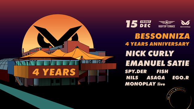 Это были огненные четыре года! И это будет огненная вечеринка. 15 декабря мы отмечаем свой четвертый День рождения в максимально приятной компании, вместе с главным представителем «майнхеймской волны», основателем лейбла 8Bit Records Ником Керли и берлинским хаус и техно-музыкантом Эмануэлем Сати. Имя Ника Керли на слуху уже добрый десяток лет. В начале нулевых его связывали с прогрессивным Mannheim Sound, — музыкой, пропагандируемой лейблом Cecille Records. Та самая «майнхеймская волна» подняла треки Ника на вершины чартов и позволила ему влиться в дружную семью Cocoon. НикаКерли Релизы на лейбле «папы Свена» и записанный им микс для серии Party Animals подарили Нику пропуск в высшую диджейскую лигу. Уже в 2010-м его имя на афишах стояло рядом с именами других «блистательных новичков»: Джейми Джонса, Майи Джейн Коулс и Сета Трокслера. Тут Нику здорово помогла серия вечеринок Kehakuma клуба Space Ibiza, ставшая настоящей кузницей кадров для европейских танполов. Несколько жарких сезонов на Ибице окончательно подтвердили звездный статус Керли. Теперь он и вовсе не подвергается сомнению. Высокую репутацию Ника Керли поддерживают релизы его собственного лейбла 8Bit Records и авторские вечеринки Trust. Второй гость «Бессонницы», Эмануэль Сати, находится только в начале своего творческого пути. Однако уже сейчас можно смело сказать, что его ждет большое будущее. Этот молодой немецкий музыкант уже отметился своими релизами на лейблах Get Physical и Saved Records, а также был назван «продюсером года» на церемонии DJ Awards 2016. #beveryspecial Line Up: Nick Curly Emanuel Satie Spy.der Fish Nils Ego.r Asaga Monoplay [live] Адрес: Болотная набережная, д. 11, стр. 1 Instagram: @bessonnizamoscow Info/Reserve: +7 495 640 03 53