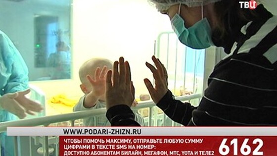Ладошка к ладошке. Последнее время 11-месячный Максим со всеми, даже с отцом, общается только так. А весь его мир - специальный стеклянный бокс. Заходить в него могут только мама и врач. Обстановка абсолютной стерильности. Все вещи - игрушки или одежда – прежде, чем попасть к малышу, проходят многоступенчатую дезинфекцию, передает "ТВ Центр". "Сначала её нужно постирать в специальной комнате, потом её нужно в шкафу высушить, потом расфасовать по таким пакетам, подписав их, отдать в специальное помещение на прожарку в печи до определенной температуры", - рассказал отец мальчика Илья Калинин. И только вымыв руки, надев маску, перчатки, обработав пакет, через специальное окно всё передают в бокс. Иначе - нельзя. Маленький Максим из Петрозаводска сейчас готовится к операции по трансплантации костного мозга. На свет малыш появился, казалось бы, совершенно здоровым. Но когда исполнилось пять месяцев, родители забеспокоились. "Глаза гноились у него чуть-чуть. Пришли к врачу. Ну, она как бы сказала - все в порядке, это бывает у маленьких, температура 37 у них до года - это нормально", - говорит Илья Калинин. Когда обычное лечение не принесло результата, начали обследование. И получив анализ крови, врачи Максима сразу госпитализировали. А окончательный диагноз поставили уже в Москве. "У ребенка один из самых тяжелых онкогематологических диагнозов - ювенильный миеломоноцитарный лейкоз. С неблагоприятной генетической поломкой. И других способов терапии этого заболевания, кроме как трансплантация костного мозга, не существует", - сообщила заведующая отделением трансплантации костного мозга РДКБ Елена Скоробогатова. Максиму начали искать донора еще летом. Но полностью совместимого в нашей стране найти не удалось, только – за рубежом. И в этом сложность. "Государство выделяет большие суммы на проведение каждой трансплантации жителю Российской Федерации - три с половиной миллиона рублей. Если донор российский, государство обеспечивает получение трансплантата. Но получение трансплантата из зарубежных регистров идет за счет средств благотворителей", - сказала Елена Скоробогатова. Во всем мире донор отдает свой костный мозг бесплатно. Но деньги необходимы и для его обследования, и для проведения лабораторной работы, активации клеток, транспортировки в Москву. На это требуется почти два миллиона рублей. Для семьи Максима - очень большая цифра. Но помочь может каждый, отправив любую сумму цифрами в тексте SMS на номер 6162. Операция назначена на эту неделю. У Максима - отличный характер. Терпеливо переносит все процедуры. Улыбчивый, весёлый. Любит общаться - хотя бы с соседями по стеклянному боксу. Обожает книжки, игрушки. Уже знает два главных слова - мама и папа. Недавно сделал первые самостоятельные шаги. И теперь очень важно ему помочь уверенно идти по жизни. Юлия Богоманшина, Наталья Епифанова, Антон Егоров, "ТВ Центр".