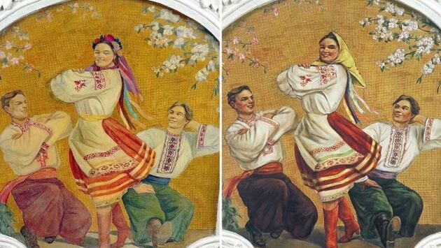 Танцующей украинке на фреске столичного метро заменили венок с ленточками на платок. Изменения можно увидеть на станции метро «Киевская» в Москве, сообщило РИА ФАН со ссылкой на пользователей социальных сетей. Ukrainian girl got a headscarf after the renovation of Kievskaya metro station in Moscow. Hello, all you alt-right people admiring Russia pic.twitter.com/ZYBQy711Iq — Mikhail Golub (@golub) 2 февраля 2018 г. На фото стенного панно можно разглядеть, что украинка сейчас носит платок вместо украинского венка. Сообщение о «переодевании» вызвало множество комментариев. Примечательно, что художник оставил ленточки, которые торчат из-под платка. Более того, девушка по-прежнему окружена украинскими «хлопцами». Все вместе они исполняют национальный танец — гопак. Ранее гопак был признан видом спорта. Закон утвердила Верховная Рада Украины. Страна причислила народную пляску к хортингу, рукопашному бою и казацкой борьбе на поясах.