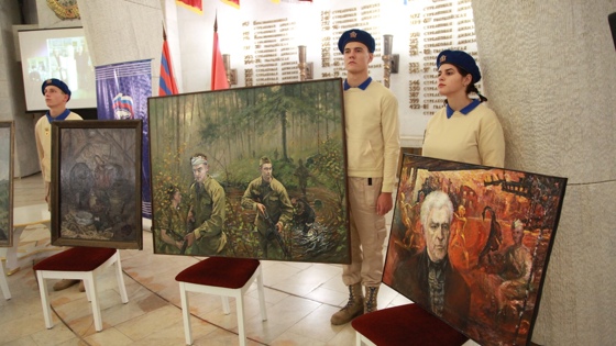 Картины подарили художники из Мурманской, Ленинградской, Калужской и Рязанской областей Взрывы, солдаты с оружием, тонущие в Ледовитом океане транспорты, идущие в бой ряды солдат, и играющие на развалинах дети, парадные портреты ветеранов и охваченные огнем города. В руках юнармейцев, выстроившихся в ряд в Триумфальном зале музея-панорамы "Сталинградская битва", десятки картин о Великой отечественной войне, подаренных Волгограду художниками со всей России. Собранные по всей стране картины передавали в Триумфальном зале - Исторический проект «Война на холсте как память поколений» проводится нами с 2015 года и мы смогли уже собрать 115 картин, написанные как известными художниками, так и самими ветеранами и теми, кто застал войну ребенком- рассказали V1.ru организаторы церемонии, - Все они живут в самых разных городах России или за рубежом, но присоединились к нашей акции и дарят свои работы городу Волгограду. Дмитрий Попандопуло нарисовал детей и войну Картины, подаренные рязанским художником Дмитрием Попандопуло, показывают детей. Они прячутся от черного неба и вражеских самолётов; держат автомат, или прыгают по развалинам играя в близкую войну. Современные дети вглядываются в детей на картинах про войну — География нашего проекта становится все больше - картины дарили мастера из самых разных мест - от Дагестана и Калмыкии до Китая, - говорят авторы проекта. — За каждой картиной стоит огромная работа людей, за каждой картиной регионы, республики и история. Все подаренные нам работы выполнены в самых разнообразных живописных техниках — есть и масло, и акварель, и графика. Более того, картины показывают самые разные страницы военной истории и его участников. Большая часть работ - парадные портреты ветеранов Картины умершего в 2016 году калужского художника Станислава Минченко «Говорит Москва» и портрет ветерана Николая Коваленко передала вдова Лариса Минченко. Свои работы привезли в музей-панораму и живописцы из Санкт-Петербурга и Рязанской области. Все полученные в подарок работы собирают в Красноармейском районе Пока подаренные городу картины можно видеть только на церемониях их передачи. — Сейчас картины хранятся в «Центре культуры досуга и кино Красноармейского района». Нам бы очень хотелось выставить все собранные нами за эти годы работы, но пока это не получается, - говорят организаторы, - Хочется, чтобы картины могли увидеть жители Волгограда, ведь для каждого из нас причастность к истории своей страны имеет большое значение. Художники вложили в работы всю свою душу, они очень внимательно следят за дальнейшей судьбой своих работ. Увидеть подаренные Волгограду работы можно только на их передаче Мурманский художник Александр Феофилактов посвятил свою работу подвигу моряков-подводников. На его картине изображена известная история о проникновении подводной лодки-малютки М-171 в бухту Линахамари, где она выпустила торпеды в немецкие корабли. Художник из Санкт-Петербурга изобразил ветерана на фоне горящего Сталинграда Свои два полотна передал Волгограду и ленинградский художник Валерия Ярош. На одном изображен ветеран войны Евгений Капитонов на фоне пылающего Сталинграда. На второй картине художника отряд разведчиков, пробирается через болота к своей цели. Каждый художник по своему видит ужасы войны Организаторы об