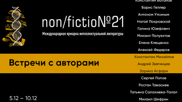 Non/fictio№ 21 начинается уже на следующей неделе, 5 декабря. «Альпина», как всегда, приедет с огромной программой и отличными книгами. В этом материале расскажем про наши встречи и презентации. Тут и паблик-ток о будущем гражданского активизма в России, и рассуждение о том, как религия влияет на экологию, и беседа о будущем интерактивного кино в мире смартфонов. Не оставим вас без книжных презентаций: режиссёр Андрей Звягинцев расскажет о своих сценариях, криминалист Борис Геллер — об отпечатках пальцев, а научный журналист Елена Клещенко — об особенностях молекулы ДНК.Расписание на:6 декабря7 декабря8 декабря9 декабряБилеты лучше купить заранее: выставка переехала в Гостиный двор, и на месте придётся отстоять очередь.Купить билетИзучить главные книги «Альпины»6 декабря15:00–16:00, Зона семинаров №3Лекция Константина Батанова: «Понять Китай: этикет, менталитет, работа»Современный Китай влияет на жизнь каждого из нас. Китаист Константин Батанов с 1998 года работал в МИДе, а с 2006 года консультирует российских и китайских бизнесменов. В этом году вышла его книга «Ни хао! Как вести дела с китайскими партнерами». На лекции он расскажет об особенностях менталитета и сложностях этикета, о том, как китайцы видят себя и иностранцев. Слушатели узнают, кем же всё-таки является Китай для России — врагом или братом навек.6 декабря, 16:00–17:00, Зона семинаров №2Лекция Бориса Геллера: «Криминалистика: от места преступления – к книге»Борис Геллер — один из ведущих экспертов-криминалистов Израиля, специалист в области дактилоскопии и исследования мест преступления, автор книги «Наука раскрытия преступлений». Принимал активное участие в расследовании более 2000 преступлений.На лекции вы узнаете о методах раскрытия преступлений, познакомитесь с практиками израильской полиции — одной из самых эффективных в мире. Ещё Борис расскажет, как 25-летний опыт превратился в 330 страниц текста с иллюстрациями.20:00–21:00, Зона семинаров №3Паблик-ток с Антоном Уткиным и Натой Покровской, модератор — Галина Юзефович: «Интерактивный сторителлинг: как достучаться до людей, уткнувшихся в смартфон?»Режиссёры и сценаристы интерактивных проектов Антон Уткин и Ната Покровская в этом году выпустили книгу-учебник «Белое зеркало». Их студия Lateral Summer сняла первый в России интерактивный интернет-сериал #ВсёСложно.На встрече авторы порассуждают на тему сторителлинга, который способен достучаться даже до людей в смартфонах. Сегодня интерактив больше не технологический «прикол», а способ вернуть сопереживание людям, для которых смартфон стал продолжением тела, — то есть большинству из нас. Модератором встречи станет литературный критик, книжный обозреватель «Медузы» Галина Юзефович.7 декабря12.00–13.00, Зона семинаров №3Презентация книги Михаила Полуэктова «Загадки сна»Сон и сновидения всегда окутывала тайна, недоступная пониманию человека. Почему каждый день мы теряем контакт с внешним миром? Зачем нужно спать? Стоит ли придавать значение снам и почему люди вообще их видят?Об этом на презентации своей книги «Загадки сна» расскажет Михаил Полуэктов — врач-сомнолог, кандидат медицинских наук, доцент кафедры нервных болезней и нейрохирургии, заведующий отделением медицины сна Сеченовского университета.13.15–14.15, Пресс-центрПрезентация книги Елены Клещенко «ДНК и её человек»ДНК-