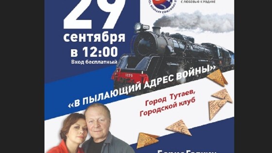 Маршрут Актёрского поезда "С любовью к Родине" - передвижного культурного проекта Независимого профсоюза актеров театра и кино – продолжится в ближайшие два дня, 29 и 30 сентября 2020 года, в Ярославской области. На берега Волги приедут Заслуженный артист Российской Федерации Борис Галкин - актёр и режиссёр театра и кино, сценарист, продюсер, композитор, автор-исполнитель Инна Разумихина и артист Николай Качура с программой "В пылающий адрес войны". Этот развернутый концертный номер продолжительностью около полутора часов посвящен 75-летию Великой Победы. Он основан на подлинных письмах с фронта офицера-артиллериста своей возлюбленной, оставшейся в тылу. Бесценные исторические документы артисты оживляют песнями, стихами и музыкой военных лет. В рамках проекта 2020 года программа "В пылающий адрес войны" с большим успехом была показана в Липецке и Ельце. 29 сентября в 12.00 артисты выступят в Городском клубе города Тутаева (Романова-Борисоглебска). 30 сентября в 12:00 концерт состоится в Малом зале Ярославского концертно-зрелищного центра. Вход на оба творческих мероприятия – свободный, без возрастных ограничений, но с соблюдением санитарных норм, предписанных Роспотребнадзором. Ярославский концертно-зрелищный центр предупреждает, что нужна будет предварительная запись, о ней подробнее сказано на сайте учреждения культуры.
