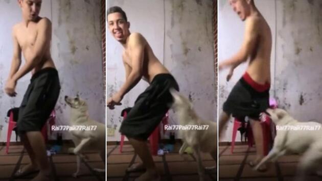 Парень, исполнив «тверк» перед носом собаки, был наказан питомцем - видео