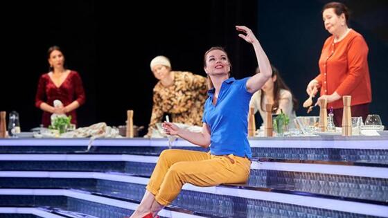 Несмотря на новую эпидемиологическую реальность, в МХАТ им. М. Горького пришли и наши друзья, и наши зрители: зал был полный, учитывая, конечно, требования времени о шахматном порядке рассадки. По традиции, перед спектаклем художественный руководитель МХАТ им. М. Горького Эдуард Бояков обратился со сцены к зрителям: «Дорогая наша публика, мы счастливы играть нашу новую премьеру, уже третью в новом сезоне. У нас, как вы, возможно, знаете, очень серьезный ритм - мы заявили 20 премьер, которые собираемся выпустить, чтобы обозначить все направления нашей репертуарной политики. Мы верим, что нам удастся это сделать, хотя, конечно, реальность вносит свои коррективы. Но мы чувствуем единение сегодня со всеми и благодарим тех, кто пришел к нам». В свете огромных мониторов условной телестудии, в которую превратилась сцена, семь женщин разных возрастов, социального статуса, национальностей рассказывают свои истории. Эти истории начинают проникать в сердца других героинь, и вот уже перед нами не просто участницы шоу, а сопереживающие друг другу люди, соучастницы судеб друг друга, почти подруги. Эффект документального театра дает потрясающий художественный эффект, потому что чувство соучастия приходит и к зрителю в зале. Семь ярких актрис – заслуженная артистка РФ Алика Смехова, Ирина Линдт, Алиса Гребенщикова, Анна Галинова, Лидия Кузнецова/Лариса Голубина, Лариса Некипелова, Елизавета Знахуренко/Елизавета Базыкина говорят со сцены от имени семи реальных сочинских женщин разных возрастов, социального статуса, национальностей. Всех их объединяет то, что они – жены. Семь историй, где смешное переплетается с трагическим, лирика – с драмой, реальность – с мечтами. Спектакль «Некурортный роман» сделан в технике документального театра - в пьесе использована речь реальных женщин. В некотором смысле документальность жанра – отсылка к МХАТ начала ХХ века, когда театр открыл Чехова и Горького как больших драматургов. Именно тогда на сцене возник вербатим, как теперь принято обозначать этот документальный жанр: прогремевший в 1902 году спектакль «На дне» Максима Горького - пьеса, основанная на монологах обычных людей из реальной жизни в исполнении актеров, чье мастерство помогает создать доверительную атмосферу между героями спектакля и зрителями. Год назад группа авторов во главе с известными драматургами и киносценаристами Еленой Исаевой, Денисом Ретровым, Владимиром Забалуевым, Алексеем Шнейдером, Иваном Шипниговым, Анной Гейжан, а также художественным руководителем МХАТ им. М. Горького Эдуардом Бояковым в течение месяца работала в Сочи - брала интервью у реальных женщин. И на их основе написала документальную пьесу «Некурортный роман». Пьеса стала совместным проектом Зимнего международного фестиваля искусств Юрия Башмета и МХАТ им. М. Горького и была представлена сочинскому зрителю в рамках XIII Зимнего международного фестиваля искусств Юрия Башмета 18 февраля 2020 года. В завершении вечера художественный руководитель театра Эдуард Бояков сказал гостям театра: «Я верю в судьбу этого спектакля, я думаю, что он будет жить и будет расти. Потому что этот спектакль - наше честное намерение: поиск героя, поиск наших современников, поиск языка современников, типических и архетипических ситуаций, которые нас наполняют смыслом, создают жизненный оп