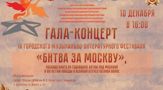 В Зеленограде в «Детской музыкальной школе им. М.П. Мусоргского пройдёт IV фестиваль «Битва под Москвой»