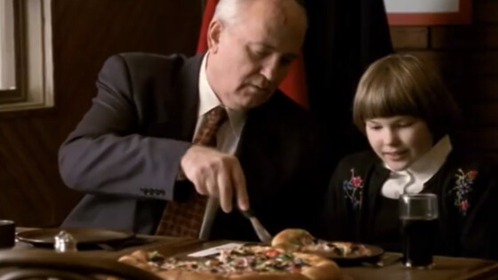 Бывший первый президент СССР Михаил Горбачев в 1997 году снялся в рекламе для американской сети закусочных "Pizza Hut". Прогуливаясь по Красной Площади, Горбачев заходит в заведение, в котором его узнают. За соседним столом начинается ярый спор касаемо его личности. Часть людей поддерживает его политику, а другая сторона выдвигает обвинения. Но в конце ролика все сходятся во мнении, что благодаря ему есть 'Pizza Hut". Как позже расскажет пресс-представитель Горбачев-фонда, бывший президент принимал участие в съемках рекламных кампаний, чтобы получить финансирование для основанных им общественных организаций. Ранее мы писали о