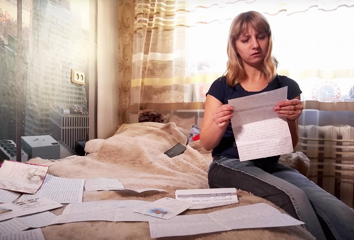 Зрителей подробно знакомят с историей романа, который в первое время главным образом состоял из общения при помощи писем и звонков. В переписке возлюбленный красноречиво демонстрировал свои чувства. «Любимая моя Леля, меня раздирает изнутри одна только мысль о том, как тебе тяжело тянуть детей, одной нести все это на своих хрупких плечах», — зачитывает Равкович одно из писем возлюбленного. Говоря о достоинствах своего партнера, она также упоминает, что мужчина беспокоится о ней и ее детях и поддерживает. По словам женщины, он также ни разу не попросил у нее ни передач, ни денег на телефон. Более того, даже предложил перечислять ей на карту свою зарплату.